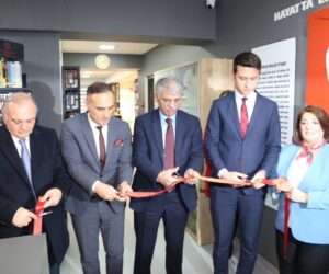kesilerek kütüphanenin resmi açılışı gerçekleştirildi. Ardından müdür Metin Aksoy’dan