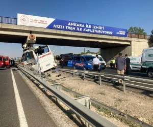 Sabaha karşı Ankara’dan Polatlı’ya seyreden ve sürücüsünün uyuduğu iddia edilen yolcu otobüsü, Olukpınar köyü yakınlarında yoldan çıkarak köprü ayaklarına çarparak adeta ikiye bölündü.